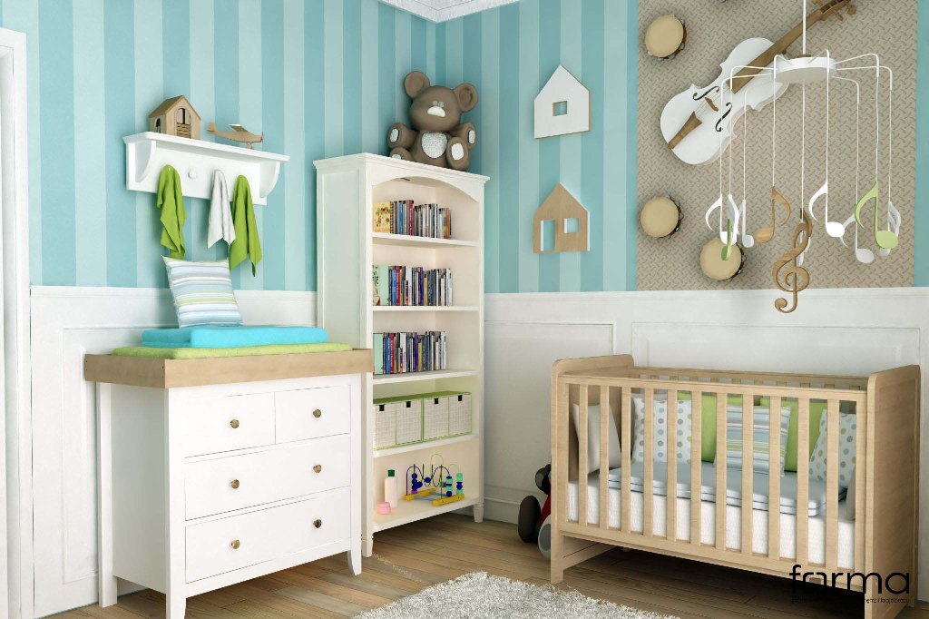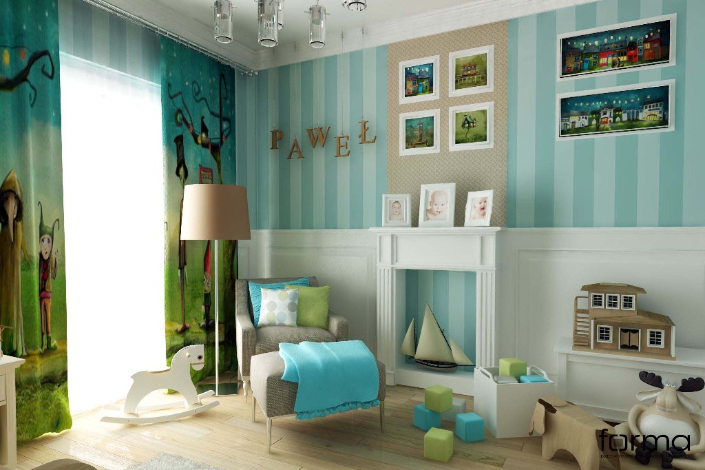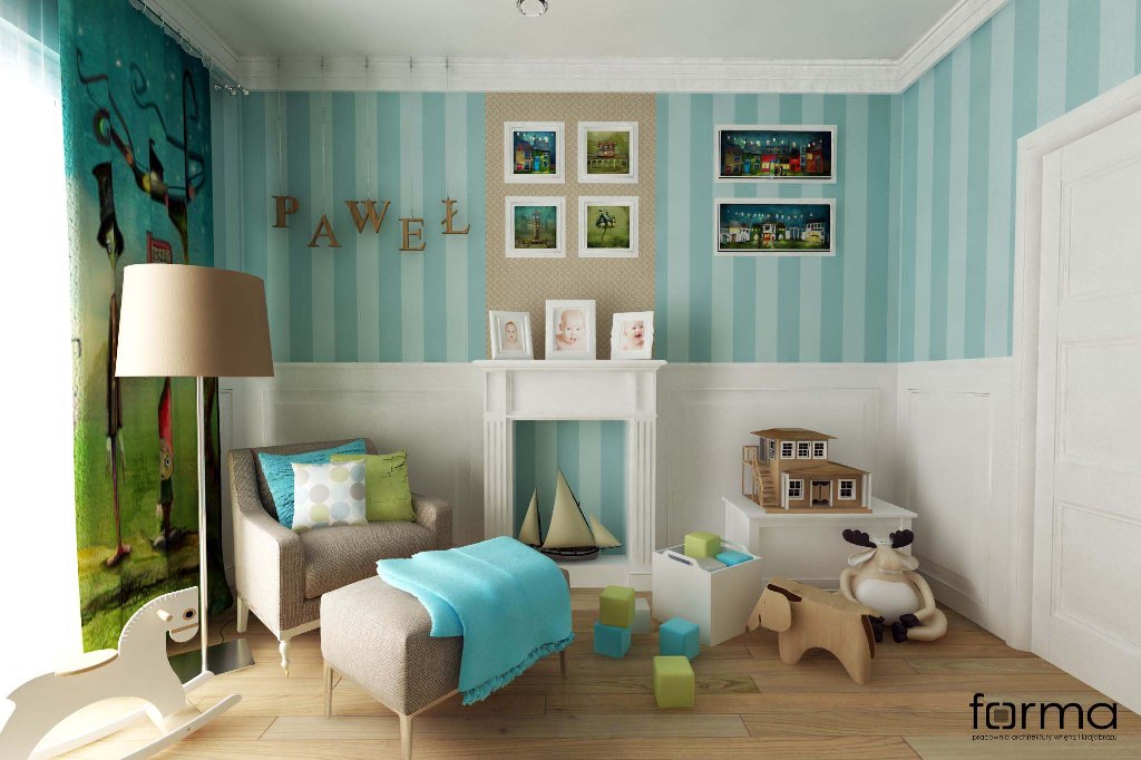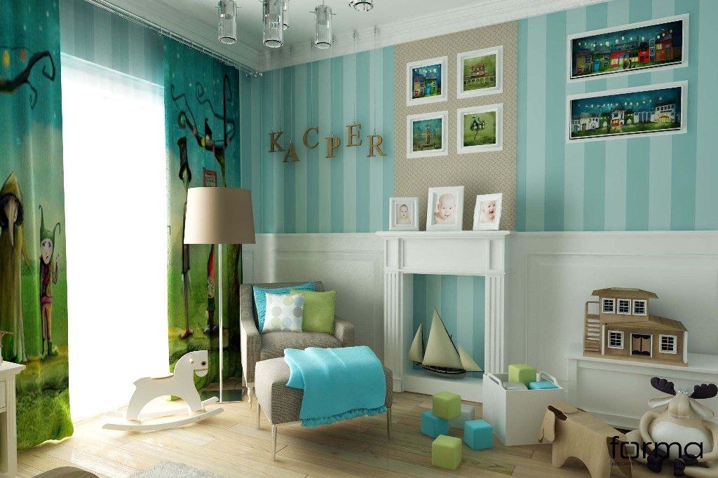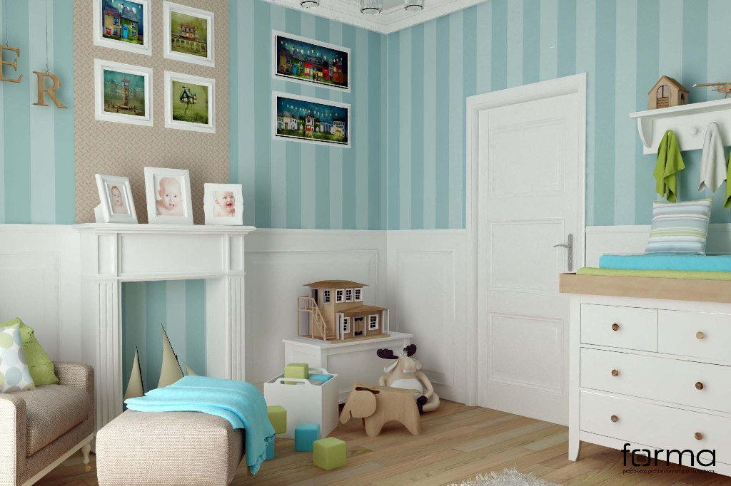 Wnętrze o klasycznym charakterze przełamane dużą ilością dodatków. Kojący błękit z bielą w połączeniu z meblami w odcieniach brązu, a także zielonymi dodatkami tworzą przytulne, eleganckie i spokojne wnętrze.